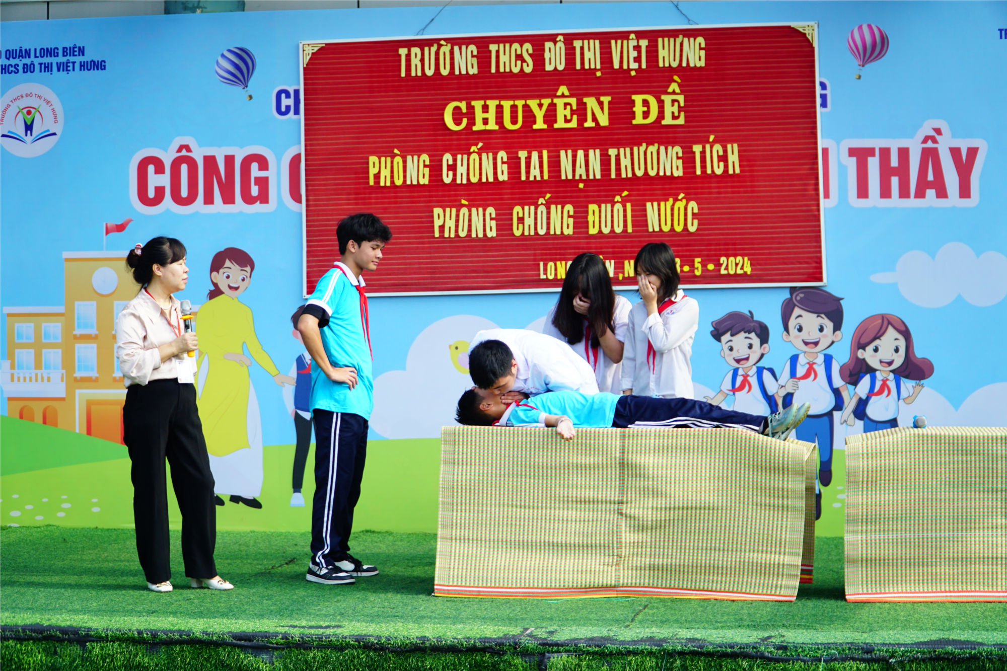 Thực hiện Kế hoạch số 24/KH-PGD&ĐT ngày 25/10/2023 của Phòng GD&ĐT quận Long Biên về Kế hoạch "Xây dựng trường học an toàn, phòng chống tai nạn thương tích" năm học 2023 – 2024 và nhiệm vụ năm học của nhà trường với mong muốn lớn nhất là 100% các em được khỏe mạnh, mỗi ngày đến trường là mỗi ngày vui. Ngày 13/05/2024 trường THCS Đô Thị Việt Hưng phối hợp với Trung tâm Y tế Quận Long Biên tổ chức chuyên đề phòng chống tai nạn thương tích và phòng chống đuối nước.