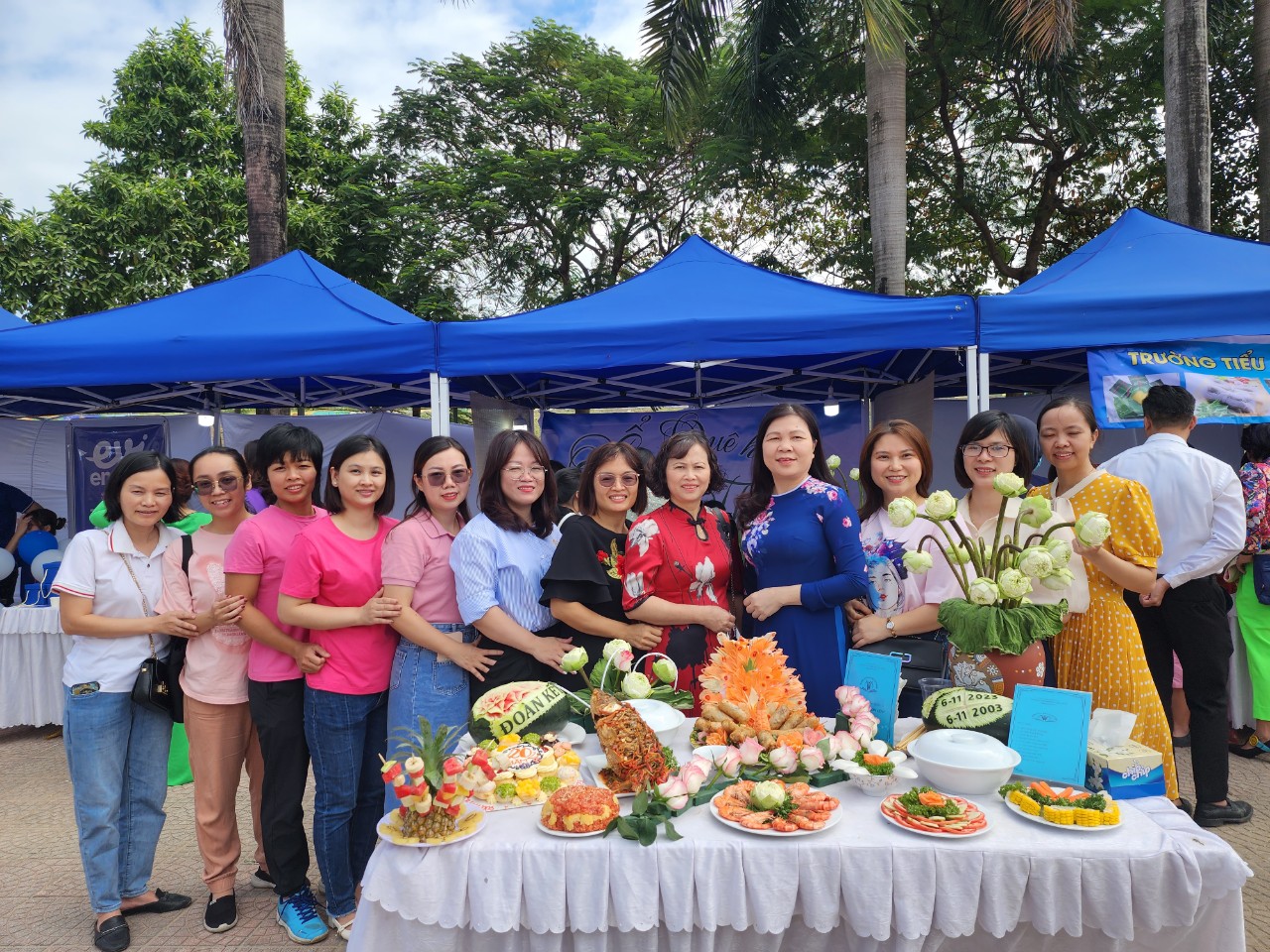 Đến với hội thi, công đoàn nhà trường đã đem đến lẵng hoa tươi sắc thắm, mâm cỗ đủ đầy chất dinh dưỡng và đậm đà bản sắc dân tộc.