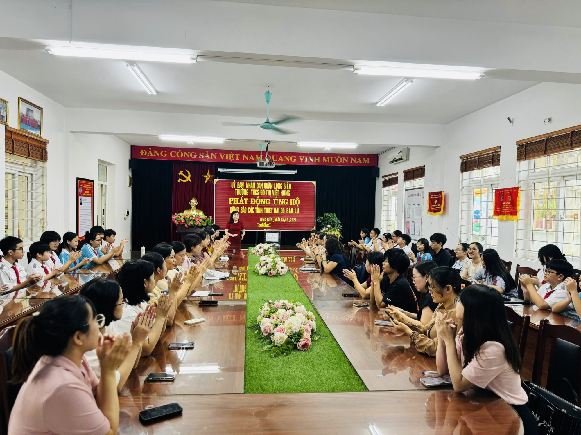 Hưởng ứng lời kêu gọi của Ủy ban Trung ương Mặt trận Tổ quốc Việt Nam vận động ủng hộ đồng bào khắc phục thiệt hại do cơn bão số 3 gây ra; phát huy truyền thống đoàn kết, tương thân tương ái “Thương người như thể thương thân”, “Lá lành đùm lá rách” góp phần cùng các cấp chính quyền và người dân nhanh chóng khắc phục khó khăn, ổn định sản xuất và đời sống. Trường THCS Đô Thị Việt Hưng đã phát