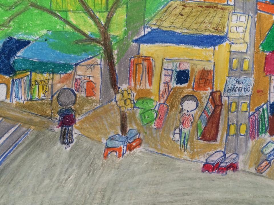 Tranh vẽ phố cổ do em Nguyễn Hoa Hoài Nhi - Lớp 8A1 trình bày
