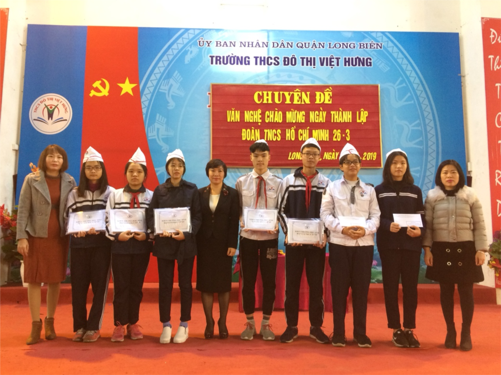 Đây là dịp để đoàn viên thanh niên phát huy mạnh mẽ tính năng động, sáng tạo trong các phong trào thi đua phấn đấu.Một trong những thành tích đáng tự hào trong dịp chào mừng 20/3 là kết quả thi HSG của các con học sinh trong kỳ thi Học sinh giỏi các môn văn hóa và Khoa học lớp 9. Trong kỳ thi Học sinh giỏi cấp Thành phố, bạn Ninh Đức Hùng lớp 9A1 đã xuất sắc giành giải Nhì môn Ngữ văn ;bạn Khuất Hồng Linh lớp 9A5 đạt giải Ba. Với 3 giải khuyến khích của bạn Đoàn Văn Quý lớp 9A2 môn Khoa học tự nhiên, Lê Minh Tâm môn Toán lớp 9A5 và Ngô Hạnh Trang môn Vật lý lớp 9A4. Ngoài ra, tuyên dương hai bạn Dương Quang Trung, Nguyễn Ngọc Anh Thư lớp 9A5 đã tham gia kì thi Olympic Tiếng Anh cấp thành phố và đạt giải khuyến khích. Chúc mừng thành tích của các con học sinh, chúc các con luôn học tập tốt và đạt nhiều thành tích hơn nữa góp phần tô thắm cho vườn hoa rực rỡ của trường THCS Đô Thị Việt Hưng.