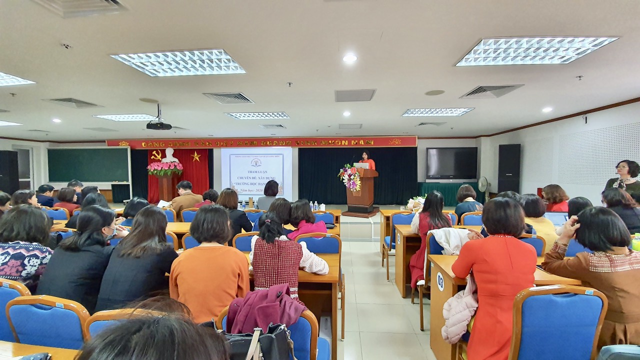 Thực hiện nhiệm vụ của Phòng giáo dục và đào tạo quận Long Biên, sáng ngày 7/3/2021, Ban giám hiệu cùng đại diện công đoàn và tổ chuyên môn của nhà trường tham dự hội thảo chuyên đề: Xây dựng trường học hạnh phúc. Trong buổi hội thảo, đại diện nhà trường được lắng nghe những chia sẻ kinh nghiệm của các trường bạn về việc xây dựng một trường học hạnh phúc. Đồng thời nhà trường cũng đóng góp một bản tham luận do cô giáo Lương Duyên trình bày với những giải pháp thiết thực đã thực hiện tốt trong những năm qua.
