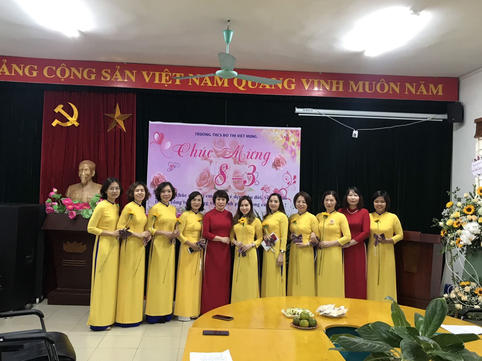 Mở đầu buổi lễ, thầy giáo Cấn Anh Tuấn - Uỷ viên Ban chấp hành Công đoàn đã ôn lại chiến thắng vang dội của hai nữ anh hùng dân tộc đầu tiên của Việt Nam trong cuộc khởi nghĩa oanh liệt Hai Bà Trưng đánh đuổi giặc ngoại xâm và lịch sử ngày Quốc tế Phụ nữ 8/3; Thầy giáo cũng nêu bật vai trò to lớn của người phụ nữ trong công cuộc phát triển đất nước hiện nay nói chung và những đóng góp của đội ngũ cán bộ giáo viên nhân viên nữ trong việc xây dựng trường THCS Đô Thị Việt Hưng nói riêng.