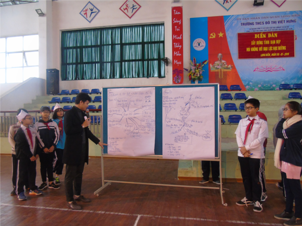 Góp phần đẩy mạnh các hoạt động tuyên truyền, giáo dục lòng nhân ái, tình yêu thương con người, giúp học sinh hiểu rõ hơn về tình bạn và sự cần thiết phải xây dựng tình bạn đẹp ở tuổi học trò. Giúp cho các bạn học sinh thấy được những hậu quả nghiêm trọng của tình trạng bạo lực học đường hiện nay từ đó có cách ứng xử đúng đắn, tránh tham gia vào bạo lực. Ngày 08/01/2018 trường THCS Đô Thị Việt Hưng tổ chức diễn đàn “Xây dựng tình bạn đẹp - nói không với bạo lực học đường”.