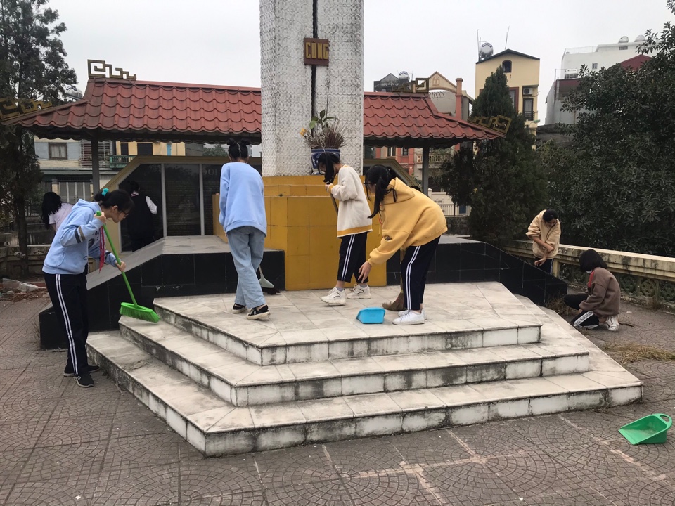 Chiều ngày 25 tháng 1 năm 2021, chi đội 7A4 cùng cô giáo chủ nhiệm, cô giáo Tổng phụ trách và các thầy cô giáo trong nhà trường đã nhổ cỏ, quét rác và lau dọn vệ sinh sạch sẽ khu vực đài tưởng niệm tại phường Giang Biên.