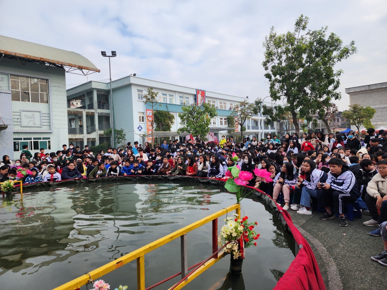 Với mục đích lan tỏa niềm vui, nhân rộng hạnh phúc, Ban giám hiệu nhà trường đã mời nghệ sĩ múa rối nước Thanh Liêm đến trường trực tiếp hướng dẫn học sinh tham gia biểu diễn.