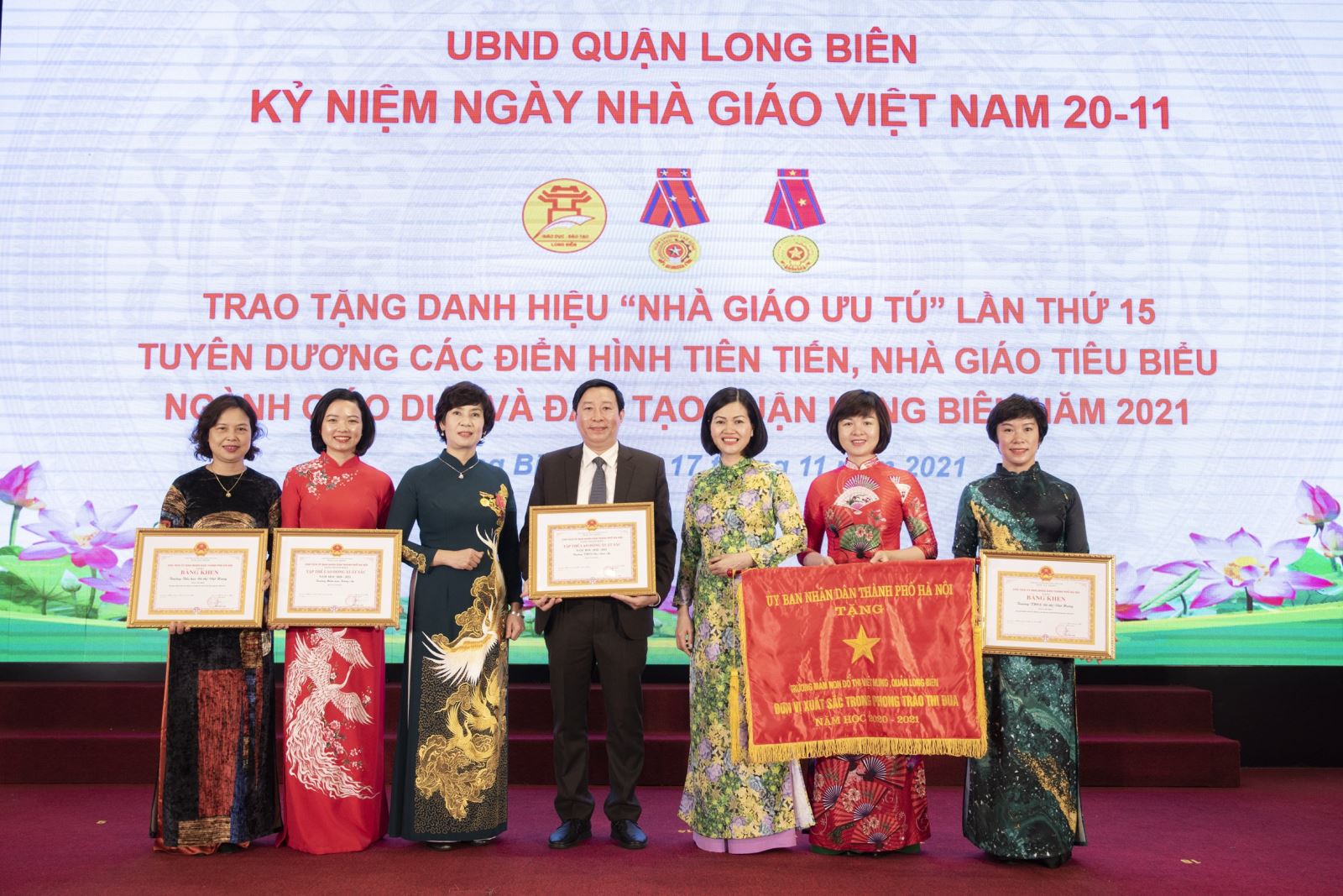 Cô giáo Nguyễn Thị Kim Thuý - Hiệu trưởng nhà trường vinh dự đón nhận bằng khen