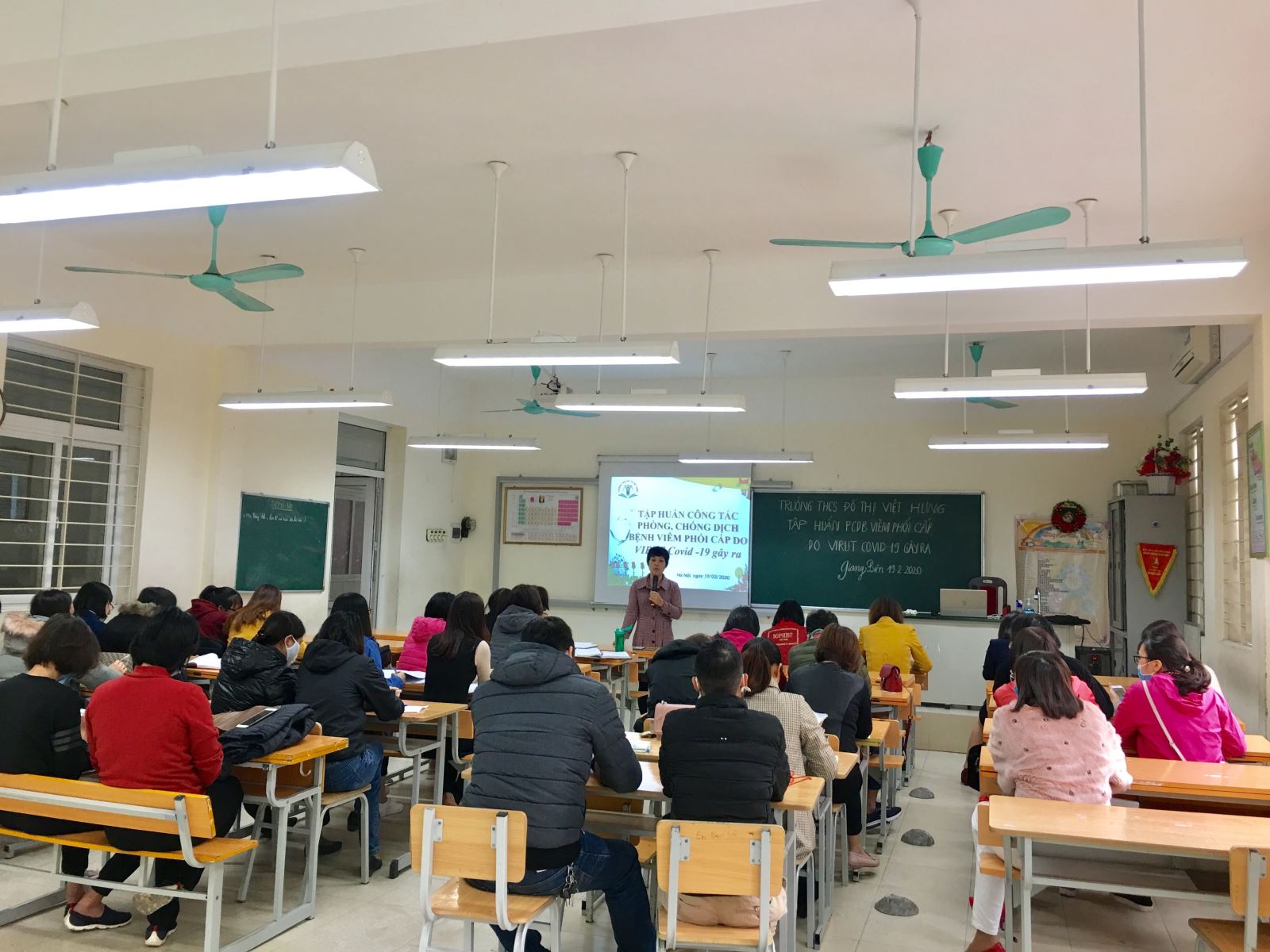 Trong giai đoạn cao điểm của dịch bệnh viêm phổi cấp do virus Covid-19 gây ra, buổi tập huấn được tổ chức nhằm kịp thời cập nhật những thông tin mới nhất, qua đó giúp cho đội ngũ cán bộ giáo viên nhân viên nhà trường có khả năng phản ứng nhanh với các tình huống có thể xảy ra, đồng thời tăng cường kiến thức, kỹ năng để triển khai thực hiện tốt công tác phòng chống dịch bệnh, quyết tâm kiểm soát, không để phát sinh dịch bệnh trong nhà trường.