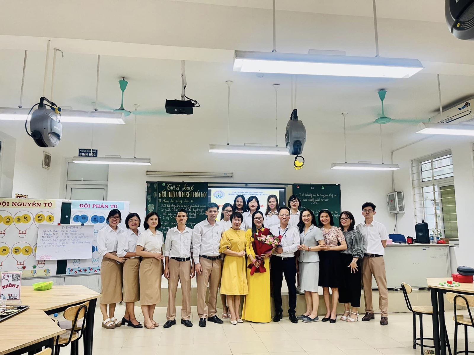 Trong tiết học cô giáo đã cho các em chia nhóm, được trực tiếp làm các thí nghiệm, trải nghiệm hoạt động STEM và tự thuyết trình phần bài của nhóm mình giúp các em hình thành các kỹ năng thực hành, phát triển được năng lực của mình. Qua bài học các em có những kiến thức cơ bản để có thể biết thêm về liên kết ion, liên kết công hoá trị trong phân tử các chất.