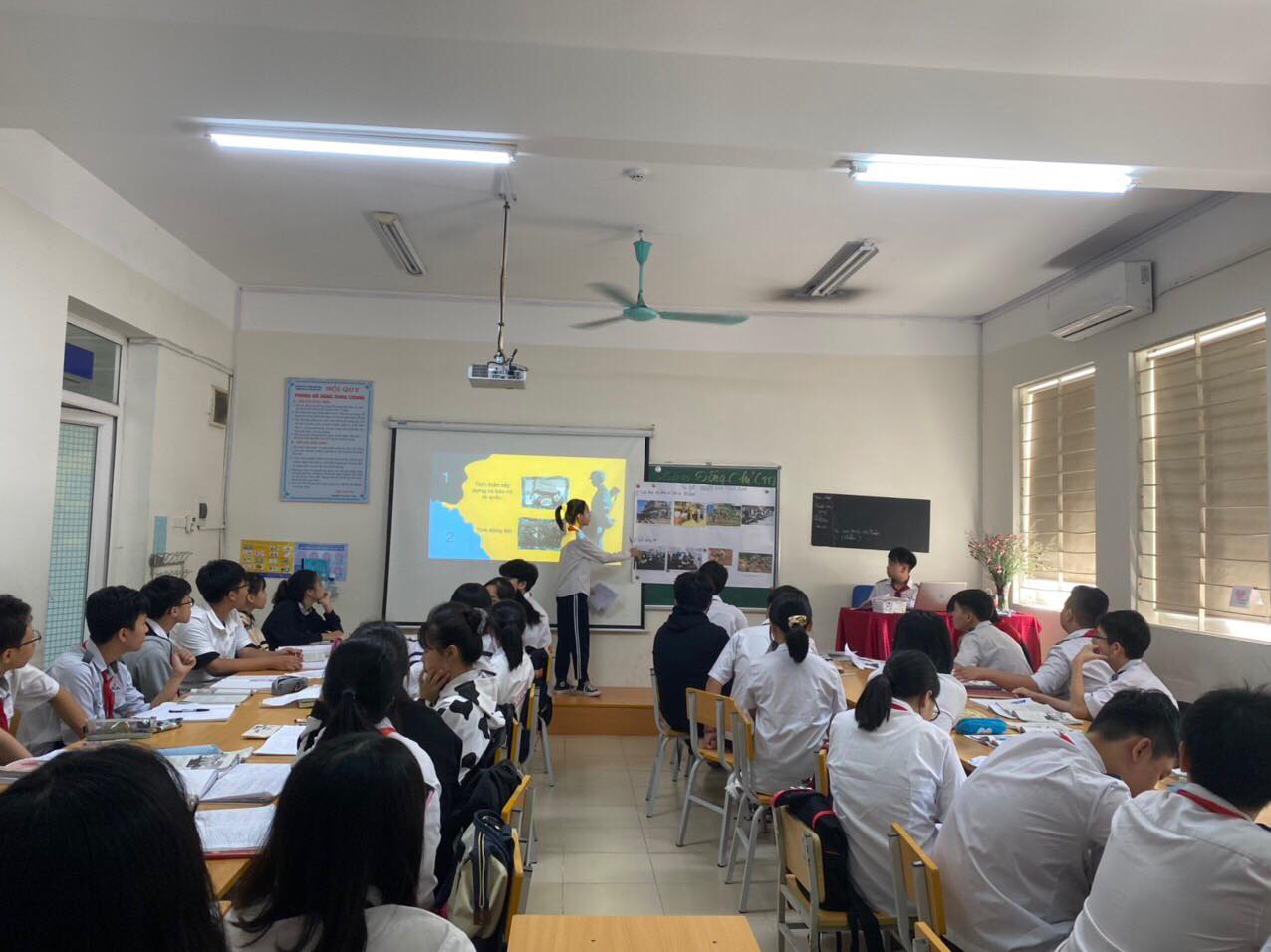 Qua đó, ngoài việc tiếp nhận kiến thức từ một văn bản, học sinh còn được rèn tính chủ động, khả năng giao tiếp và kĩ năng hợp tác một cách hiệu quả. Thông qua hoạt động nhóm, các bạn học sinh được thảo luận, tương tác để trao đổi kiến thức. Nhờ vậy mà giờ học đã thu hút được tất cả các thành viên cùng tham gia với tinh thần chủ động trao đổi, tranh biện. Thú vị nhất có lẽ là ở phần thuyết trình kết quả thảo luận nhóm, đại diện nhóm 4 đã khiến cả phòng học bất ngờ với chất giọng truyền cảm và phong cách trình bày hết sức tự tin. Sau giờ dạy, tổ chuyên môn đã rút kinh nghiệm những ưu điểm và một số tồn tại để giáo viên trong tổ học hỏi và thảo luận phương pháp giảng dạy đạt hiệu quả nhất, phù hợp với đối tượng học sinh.