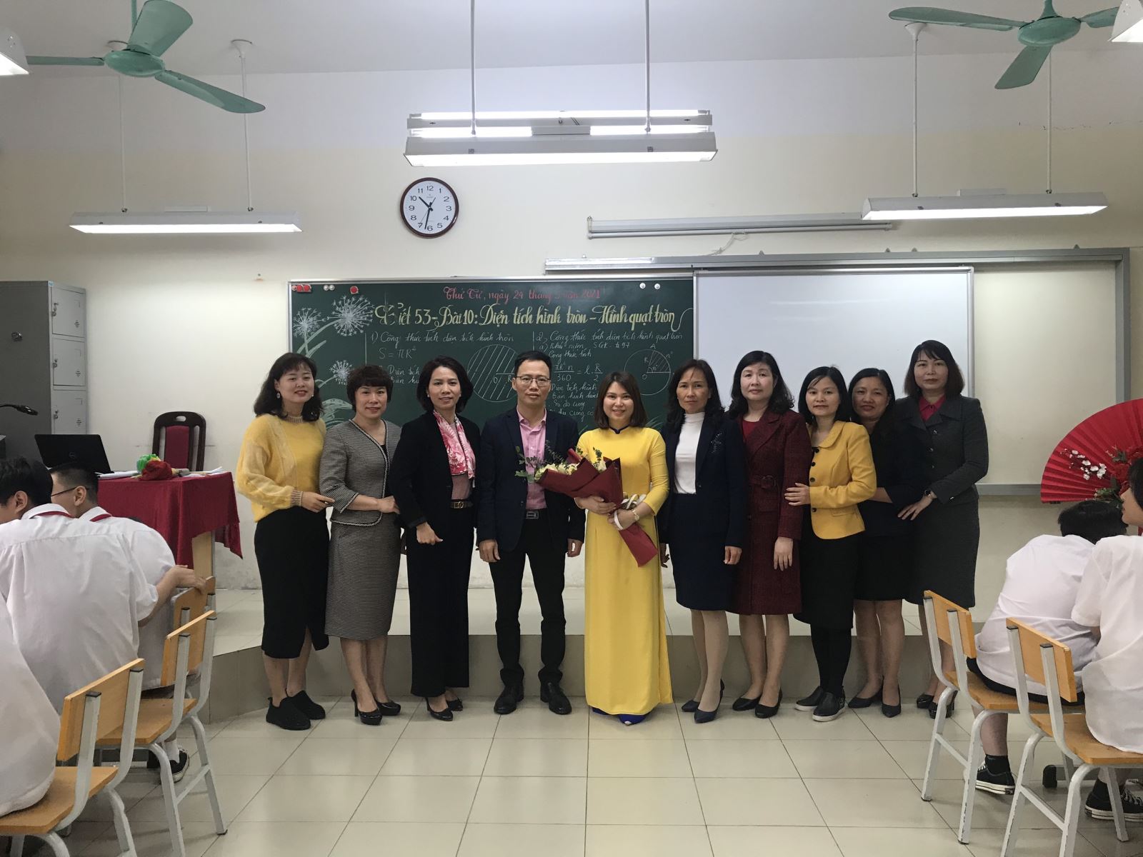 Lãnh đạo PGD&ĐT Quận Long Biên, BGH nhà trường cùng các thầy cô giáo nhóm Toán trong tiết thi GVG môn Toán của cô Thu Phương