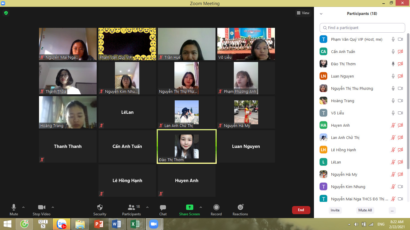 Các bài dạy trực tuyến được các giáo viên trong tổ, nhóm nghiên cứu, chia sẻ nhằm đảm bảo việc giảng dạy thực sự chất lượng, hiệu quả trong mùa dịch. Bên cạnh đó, nhà trường cũng đã triển khai việc dạy trực tuyến cho học sinh qua phần mềm Zoom. Để đảm bảo hiệu của của các tiết học trực tuyến, chiều ngày 21/2/2021 toàn thể CBGV trong nhà trường được tham gia lớp tập huấn: Thiết lập tài khoản Zoom cho phòng học hẹn trước cho mối lớp không giới hạn thời gian do thầy Nguyễn Lương Hùng hướng dẫn.