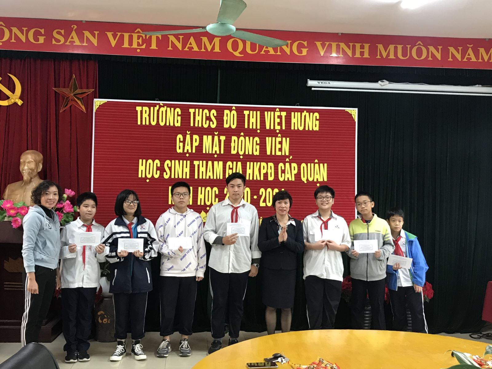 Tham gia hội khoẻ phù đổng cấp Quận năm nay, có 63 con học sinh đến từ các tập thể lớp thi đấu với nhiều bộ môn: Bóng đá, Bóng rổ, cầu lông, điền kinh, bơi lội, cờ vua… Đến dự buổi gặp mặt có cô giáo Nguyễn Thị Kim Thuý – Bí thư Chi bộ - Hiệu trưởng nhà trường, cô giáo Đinh Thị Hường – Tổ trưởng tổ năng khiếu, cùng các thầy cô giáo trực tiếp ôn luyện cho các đội tuyển ở các bộ môn.