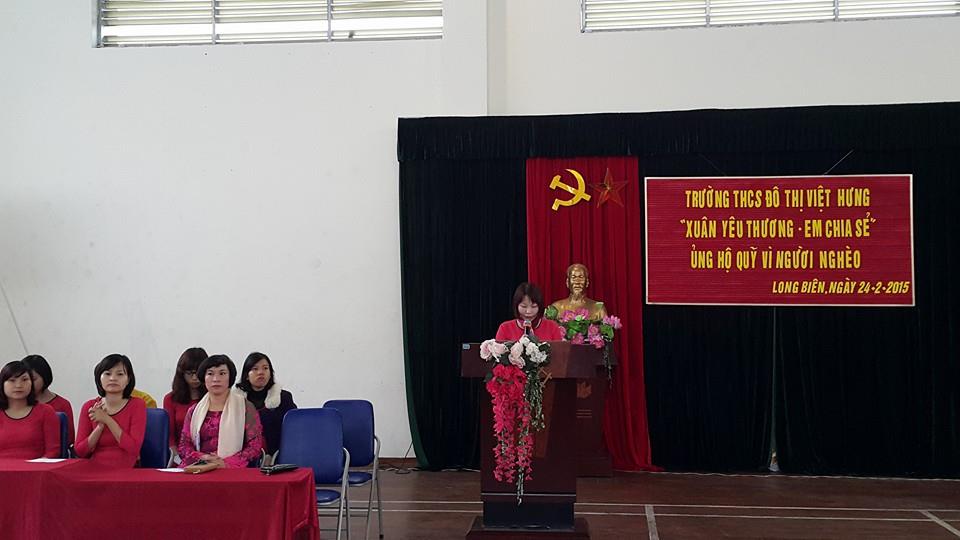 Thay mặt cho Công đoàn nhà trường, cô giáo Nguyễn Thị Thanh Thủy- Chủ tịch Công đoàn đã kêu gọi toàn thể cán bộ giáo viên, nhân viên, phụ huynh và học sinh trường THCS Đô thị Việt Hưng hãy tiếp tục phát huy truyền thống tương thân tương ái, mở rộng vòng tay nhân ái để ủng hộ quỹ.