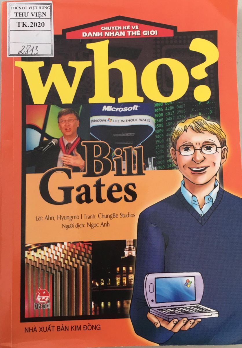 "Who – Bill Gates". Cuốn sách do Nhà xuất bản Kim đồng xuất bản năm 2018, do các tác giả Ahn, Hyungmo; Ngọc Anh dịch và sưu tầm tuyển chọn. Cuốn sách dày 117 trang với khổ sách là 21 cm. Đây là cuốn sách diễn tả vô cùng sinh động và chân thực về cuộc đời của Bill Gate từ thời niên thiếu cho tới khi đạt được những thành công rực rỡ trong sự nghiệp, góp phần thay đổi thế giới.