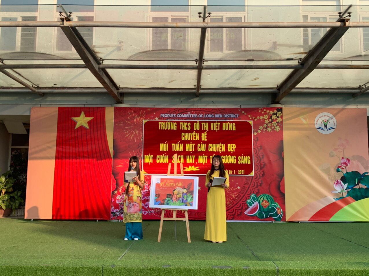 Qua sự dẫn dắt khéo léo của cô giáo Đặng Thanh Dung và lời kể diễn cảm của bạn Ngọc Huyền lớp 7A3 đã mang đến trọn vẹn một mùa Xuân cho bạn đọc trong buổi chuyên đề. Các bức tranh minh họa bằng màu nước rực rỡ khổ lớn của họa sĩ Kim Duẩn được nghiên cứu chi tiết, miêu tả chân thực rõ nét. Tất cả trọn vẹn hạnh phúc, háo hức chờ đón một mùa Xuân quây quần bên người thân, gia đình và nâng niu Tết yêu thương.